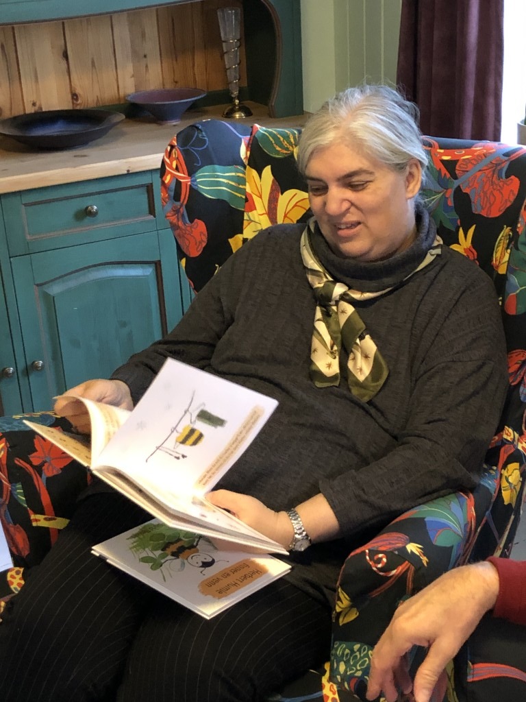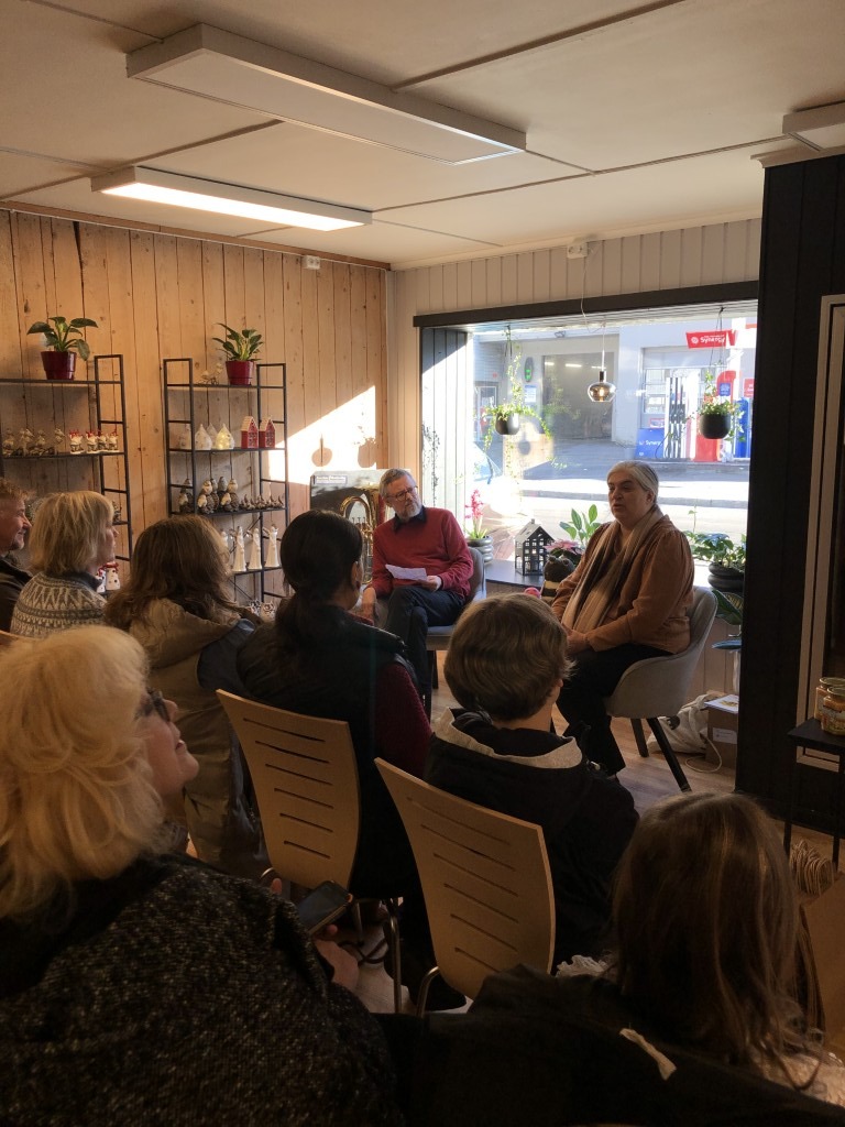 I høst har vi skrevet en hel del om Herbert Humle og prosessen fram til ferdige bøker på Facebook og Instagram. De to første bøkene ble utgitt 10. november, som planlagt, og lanseringen skjedde lørdag 15. november i Åmlis blomsterbutikk. 🌻🌼🌹🪻Et perfekt sted for en liten humle. 🐝Da var det stas å måtte sette fram flere stoler fordi lokalet fyltes opp. Og da de fleste frammøtte attpåtil kjøpte begge bøkene, da var godfølelsen der. 📚😊